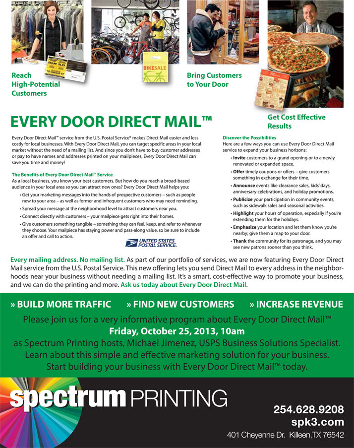 Eddm (every door direct mail) is an excellent way of simplifying the process of sending direct mail to small businesses. Just choose demographics and zip codes to target routes. Every door direct mail (eddm ®) campaigns offer a simple and affordable way to acquire new customers—and engage existing ones—within specific regions across specific demographics. We send them to you printed.