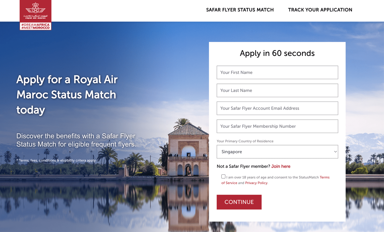Royal Air Maroc Safar Flyer Elite Status Match pay to receive up to